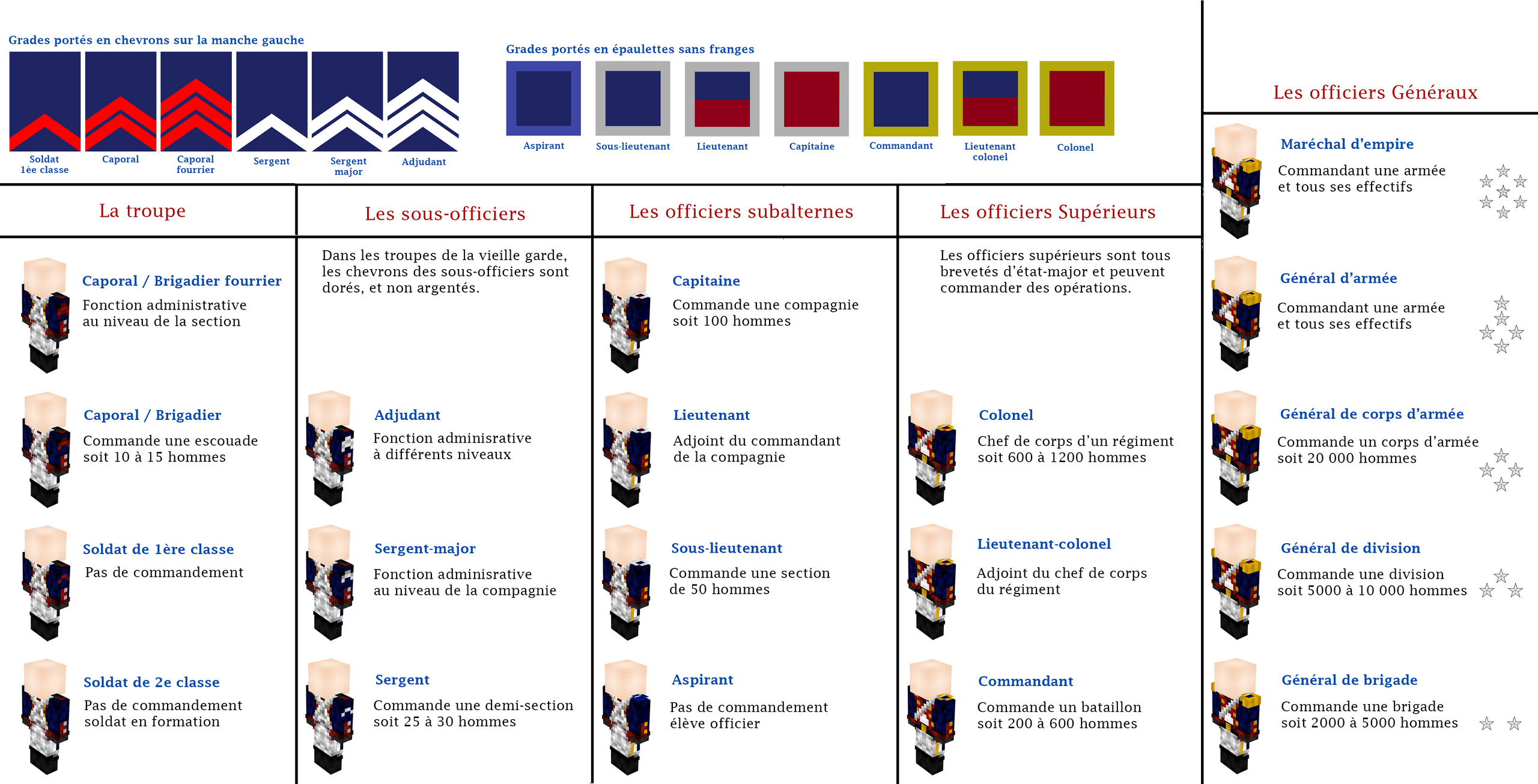 Les grades de la garde volontaire et leurs représentations sur l'uniforme
