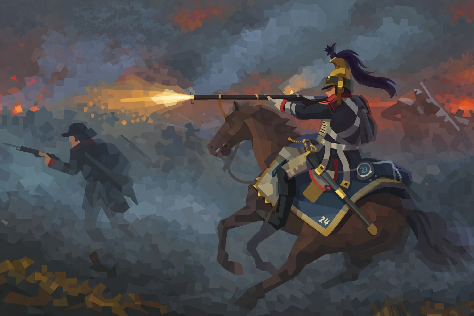 Soldat du régiment de Pencroff-Cavalerie au combat durant la campagne d'Olstzr