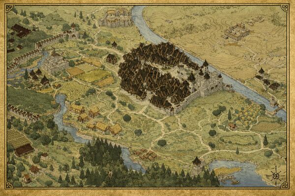 Les hameaux de Hulme et Lambache se trouvent à quelques kilomètres au nord-ouest de Tolwhig et sont frontaliers avec le royaume de GLindelhall. Hulme est un petit village agricole paisible, entouré de champs de blé et quelques pâturages où paissent des moutons et des vaches. Les maisons sont modestes, avec des toits de chaume ou de tuiles et des murs de brique en terre cuite, et les rues sont bordées de haies de roseaux et de pommiers. Lambache est un hameau plus petit encore, avec seulement quelques maisons en pierre et une petite église de campagne. Les habitants de Lambache sont des artisans habiles qui fabriquent des articles tels que des paniers en osier, des jouets en bois et des poteries.