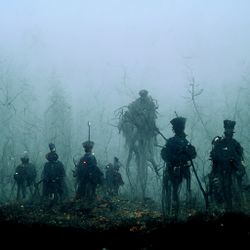 La nuit fut particulièrement angoissante pour la majorité des bleus de la troupe, incluant Astrid, la condition de la 8e n’ayant échappé à aucun regard. Le sommeil venait pour personne, et les vigiles furent ordonnés de redoubler leurs rondes. A l’aube, n’ayant put fermer l’oeil que 3 heures, la compagnie entra en terrain incertain, l’air frais et calme remplacé par un souffle frigide, et un épais brouillard obstruait la vision. Le silence était maître, même le fracas des pas de marche de la troupe semblait s’estomper dans la brume. L’ordre fut donné de tenir l’arme à feu prêt. | La nuit fut particulièrement angoissante pour la majorité des bleus de la troupe, incluant Astrid, la condition de la 8e n’ayant échappé à aucun regard. Le sommeil venait pour personne, et les vigiles furent ordonnés de redoubler leurs rondes. A l’aube, n’ayant put fermer l’oeil que 3 heures, la compagnie entra en terrain incertain, l’air frais et calme remplacé par un souffle frigide, et un épais brouillard obstruait la vision. Le silence était maître, même le fracas des pas de marche de la troupe semblait s’estomper dans la brume. L’ordre fut donné de tenir l’arme à feu prêt. | ||