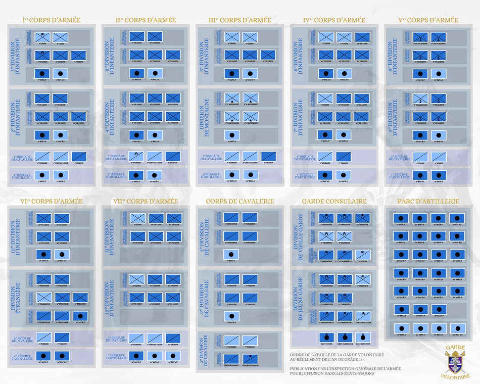 Cette page répertorie les anciens ordres de bataille de la Garde Volontaire et documente leur évolution.